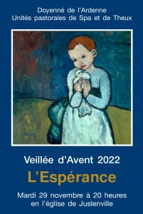 Vous avez eu la chance de participer à la veillée d’Avent, ce 29 novembre 2022, et vous souhaitez relire les textes pour les méditer, ou retrouver les chants ?