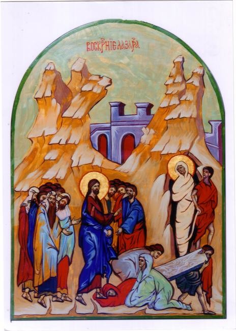 Lazare sort du tombeau icône serbe