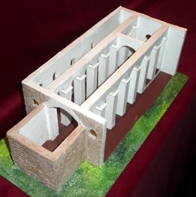 La zone occidentale qui s’étend sur les sixième et septième travées (voir ci-dessus la maquette de madame Paelem) possède deux piliers plus forts et recouvre vraisemblablement l’emplacement d’une tour intégrée à l’ensemble de l’édifice. Par sa masse, cette zone avait certainement une fonction défensive pour le bourg installé autour de l’église. Cette zone occidentale, de même surface que le chœur, est nettement séparée du reste de l’église par plusieurs marches et une importante surélévation du sol.