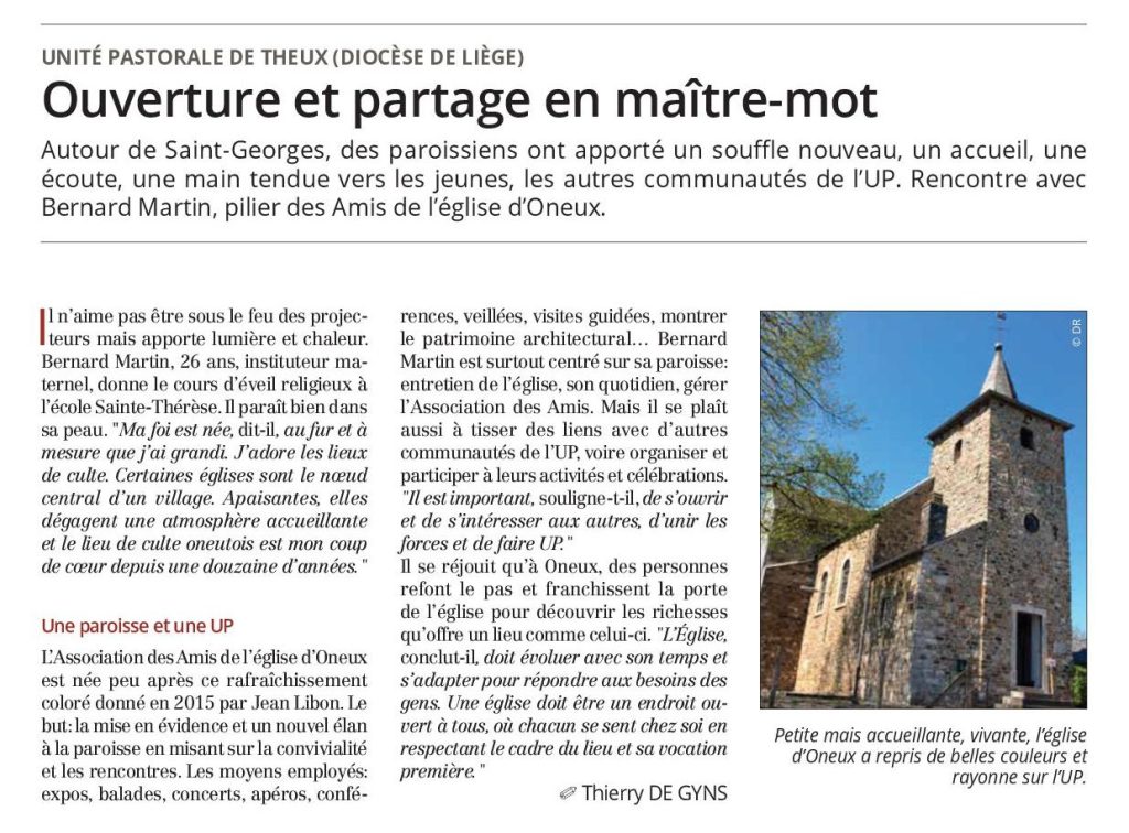 Pour suivre l’actualité de l’église d’Oneux, rendez-vous sur Facebook !