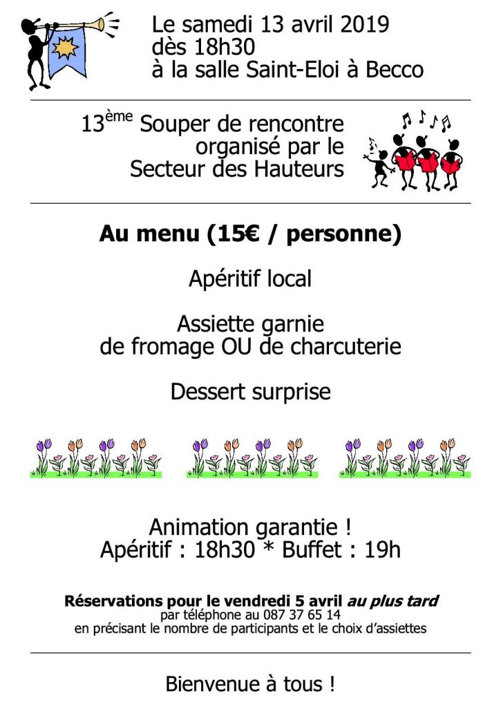 Plus de 80 personnes s’étaient donné rendez-vous à la salle Saint-Éloi à Becco le samedi 23 avril dernier, pour le désormais traditionnel Souper des Hauteurs.